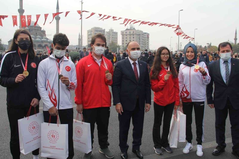 2021 Dünya Büyükler Kick Boks Şampiyonası’nda dünya ikincisi olan Hayriye Türksoy Hançer’in de ödüllendirildiği bayram etkinliğinde toplanda 18 sporcuya ödül verildi. 29 Ekim Cumhuriyet Bayramı, dün Kayseri’de büyük bir coşkuyla kutlandı. Kayseri Cumhuriyet Meydanı’nda yapılan törende, 2021 yılında çeşitli spor branşlarında dereceye giren sporcular ödüllendirildi. Sporculara ödülleri, Kayseri Valisi Şehmus Günaydın, Kayseri Büyükşehir Belediye Başkanı Memduh Büyükkılıç ve Garnizon Komutanı Tuğgeneral Vedat Öncel tarafından takdim edildi. Ödül alan sporcular şu şekilde;