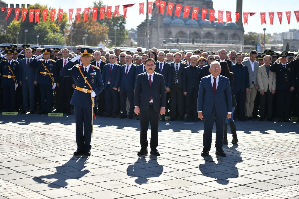 29 Ekim Cumhuriyet Bayramının 101 yıldönümü Cumhuriyet Meydanındaki Atatürk Anıtı önünde düzenlenen çelenk sunma töreniyle başladı. Törende, Vali Gökmen Çiçek, Büyükşehir Belediye Başkanı Memduh Büyükkılıç ile Garnizon Komutanı Hava Tuğgeneral Volkan Ersun Acar, anıta çelenk sunarak saygı duruşunda bulundu.