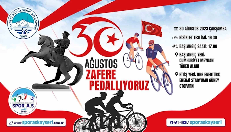 Büyükşehir Belediyesi Spor A.Ş. tarafından kent merkezinde düzenlenecek olan bisiklet etkinliğinde tüm sporseverler pedal çevirecek. 30 Ağustos’ta gerçekleşecek olan ve katılımın ücretsiz olduğu bisiklet etkinliği, Cumhuriyet Meydanı tören alanından başlayarak RHG Enertürk Enerji Stadyumu Güney Otoparkı’nda son bulacak. Büyük zaferin yıl dönümünde Kayserili bisiklet tutkunları, yaklaşık 10 kilometrelik güzergâhta pedal çevirerek, 30 Ağustos Zafer Bayramı’nı bu etkinlikle kutlayacak.