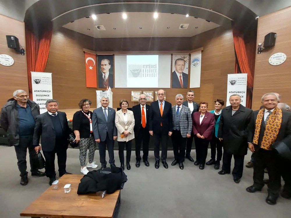 Atatürkçü Düşünce Derneği Kayseri Şubesi tarafından Atatürk’ün Heyet-i’ye Temsiliye Reisi olarak Kayseri’ye gelişinin 104.yılı dolayısıyla” "Mustafa Kemal kimdir? Atatürk kimdir?" konulu - konferans düzenlendi. Prof. Dr. Hurşit Güneş ‘in konuşmacı olarak katıldığı konferansa ADD Üyeleri ile kalabalık bir davetli topluluğu katıldı.Prof. Dr. Hurşit Güneş, Konferansında Atatürk’ü anlattı. Güneş, Atatürk, 23 Nisan 1920'de Ankara'da TBMM'nin açılmasıyla Türkiye Cumhuriyeti'nin kuruluşu müjdelenmiştir. 1 Kasım 1922'de hilâfet ve saltanat birbirinden ayrıldı, saltanat kaldırıldı. Böylece Osmanlı İmparatorluğu'yla yönetim bağları koparıldı. 13 Ekim 1923'te Cumhuriyet idaresi kabul edildi, Atatürk oybirliğiyle ilk cumhurbaşkanı seçildi. 30 Ekim 1923 günü İsmet İnönü tarafından Cumhuriyet'in ilk hükümeti kuruldu. Kurtuluş Savaşı'nın ardından TBMM tarafından 29 Ekim 1923 günü Cumhuriyet ilan edilirken, Mustafa Kemal de Cumhurbaşkanı seçildi. 1938'deki ölümüne dek arka arkaya 4 kez cumhurbaşkanı seçilen Atatürk, bu görevi en uzun süre yürüten cumhurbaşkanı oldu. Mustafa Kemal'e, 24.11.1934 günlü, 2587 sayılı kanunla Atatürk soyadı verildi ve bu soyadının başkaları tarafından kullanılması yasaklandı. Mustafa Kemal Atatürk, 1929 Dünya Ekonomik Bunalımı'nın etkilerini hafifletmek ve ülkenin kalkınmasını hızlandırmak amacı ile 1933'te Beş Yıllık Sanayi Planı'nı başlattı. Aynı dönemde dış politikada da önemli adımlar atıldı; Milletler Cemiyeti'ne girilmesi (1932), Balkan Antantı'nın imzalanması (1934), Montrö Boğazlar Sözleşmesi (1936) ve Sadabat Paktı (1937) gibi girişimler Türkiye'nin bölgesinde ve dünyada etkili bir aktör olarak öne çıkmasına katkıda bulundu. Atatürk, Hatay'ın anavatana katılması için yoğun bir diplomatik çaba sarf etti ve onun bu amacı, vefatının ardından 1939 yılında gerçekleşti.Atatürk'ün sağlık durumu 1937 yılından itibaren bozulmaya başladı. Kendisine 1938 yılı başlarında siroz teşhisi konuldu. Avrupa'dan doktorlar getirildi. Türk ve yabancı doktorların tedavileri sonuç vermedi. Türkiye Cumhuriyeti'nin kurucusu ve ilk cumhurbaşkanı Atatürk, 10 Kasım 1938 Perşembe sabahı saat 09.05'te İstanbul Dolmabahçe Sarayı'nda hayatını kaybetti.” Haber: Mehmet Yılmaz
