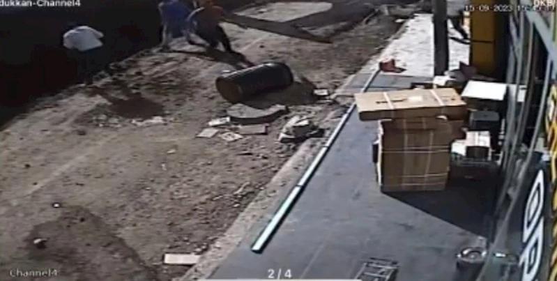 Toprağın kayması ve işçilerin yaşadığı panik ise çevredeki güvenlik kameralarına yansıdı.