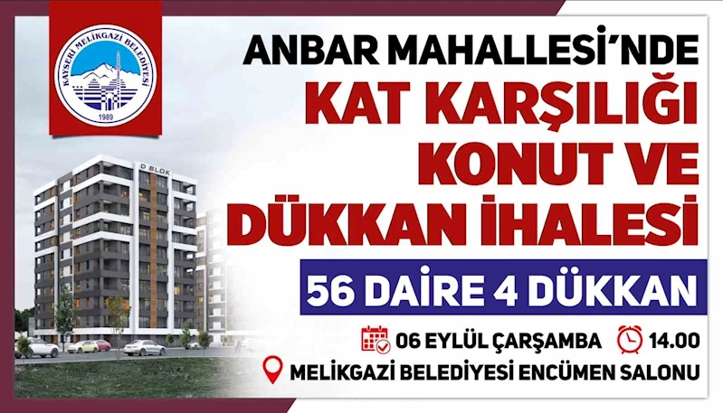 MELİKGAZİ BELEDİYE BAŞKANI DOÇ. DR. MUSTAFA PALANCIOĞLU, ANBAR MAHALLESİ'NDE 1 BLOK 56 ADET DAİRE VE 4 DÜKKÂN İÇİN İHALE YAPILACAĞINI SÖYLEDİ.