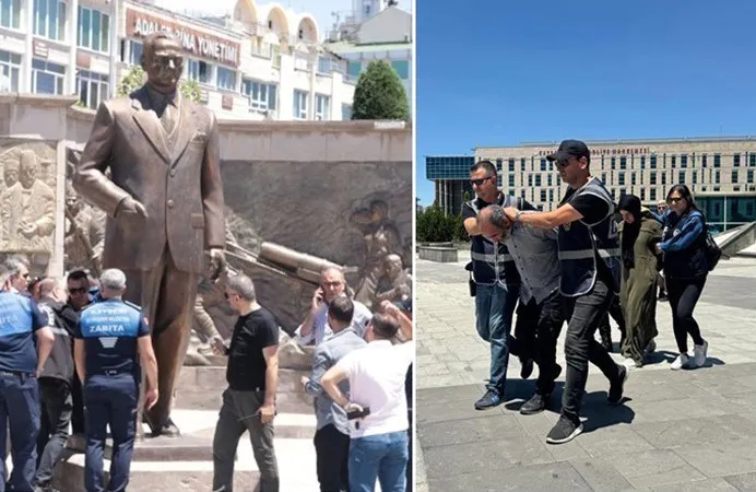 Cumhuriyet Meydanındaki Atatürk heykeline satırla saldırarak zarar veren dayı ve yeğeni 4 yıl 4 ay cezaya çarptırıldı. Ancak, dayı-yeğen cezaevinde yattıkları süre dikkate alınınca tahliye edildi.