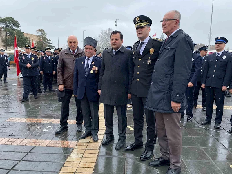 Kayseri İl Emniyet Müdürlüğü tarafından Türk Polis Teşkilatı’nın 180’inci yılı dolayısıyla program düzenlendi. Cumhuriyet Meydanı’nda düzenlenen programa, İl Emniyet Müdürü Atanur Aydın, Kayseri Polis Meslek Eğitim Merkezi Müdürü Nihat Duygu, Türkiye Harp Malulü Gaziler, Şehit Dul ve Yetimleri Derneği Kayseri Şube Başkanı Ali Yavuz, müdür yardımcıları, gaziler, polisler ve vatandaşlar katıldı. Törende ilk olarak kortej yürüyüşü gerçekleştirildi. Ardından konuşan İl Emniyet Müdürü Atanur Aydın, "180 yıl içinde vermiş olduğumuz şehitlerimiz başta olmak üzere tüm hakkın rahmetine kavuşmuş meslektaşlarıma Allah’tan rahmet diliyorum. Son dönemde devletimize ve devletimizin kurumlarına yönelik olarak yoğun bir dezenformasyon var. Öyle bir ordumuz var ki kendi kara sınırı olmayan ülkede, hava, deniz ve kara operasyonları yapıyor. Allah ordumuza zeval vermesin. Öyle bir istihbarat teşkilatımız var ki bölgede herhangi bir siyasi oluşum olmadan orayla irtibat kuruyor ve oradaki her türlü iş ve işlemlerde masada bulunuyor. Dünyada marka olmuş bir emniyet teşkilatımız var. Yurt içinde de barış ve huzuru sağlıyor. Devletimize ve kurumlarına güvensinler" ifadelerini kullandı.