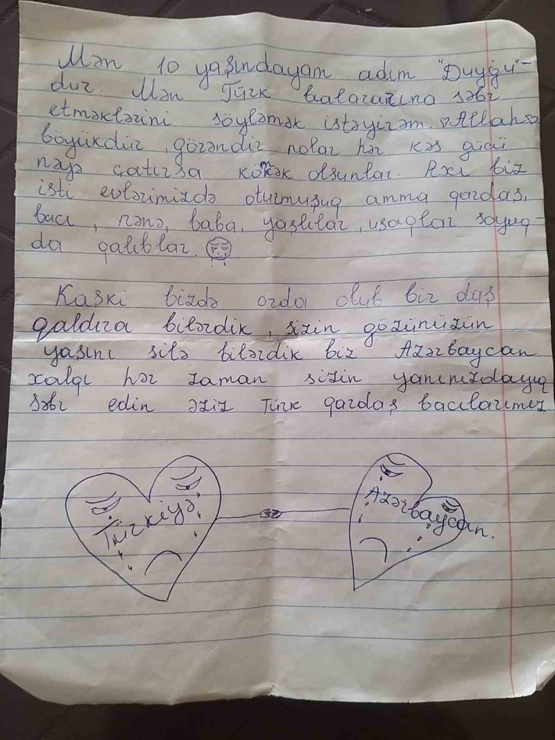 Azerbaycanlı çocuktan yürekleri ısıtan mektup