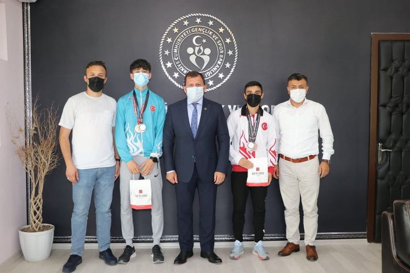 İstanbul’da gerçekleştirilen Balkan Gençler Atletizm Şampiyonasından 1 gümüş, 1 bronz madalya ile dönen Kayserili Atletler Bahri Doğu ve Halil Sade Antrenörleri Kemal Koyuncu ve Serdar Sırma Aydoğan ile birlikte İl Müdürü Ali İhsan Kabakcı’yı ziyaret etti.