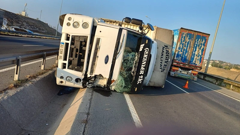Bamya yüklü kamyon devrildi, ulaşım aksadı