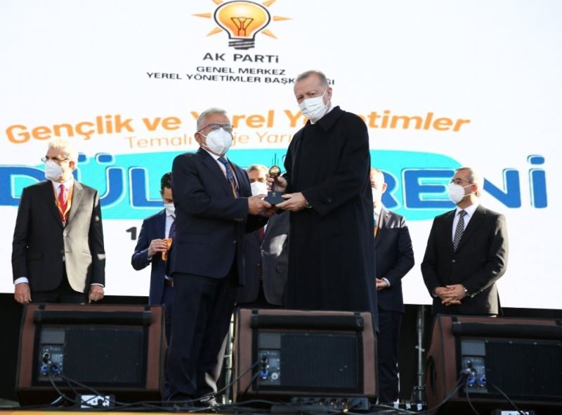 Ödül takdiminde Başkan Büyükkılıç ile Cumhurbaşkanı Erdoğan’a, AK Parti Yerel Yönetimlerden Sorumlu Genel Başkan Yardımcısı Mehmet Özhaseki de eşlik etti.
