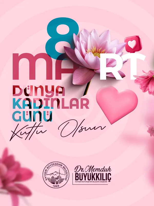 Kayseri Büyükşehir Belediye Başkanı Dr. Memduh Büyükkılıç; 8 Mart Dünya Kadınlar Günü dolayısıyla yayımladığı mesajda Türk kadınının fedakârlığı, emeği ve azmiyle hem ailenin hem de toplumun en güçlü temeli olduğunu vurgulayarak, "Kadınlarımızın emeği ve gücüyle Kayseri’miz daha da büyüyor, daha da güçleniyor" ifadelerini kullandı.