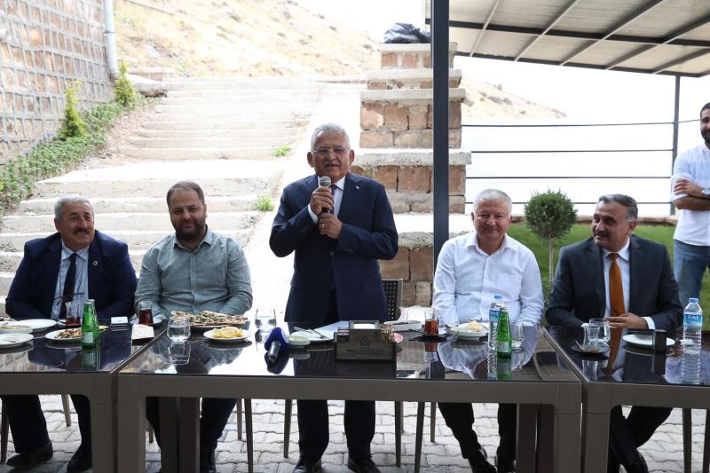 Develi Muhtarlar Derneği Başkanı Abdullah Ganioğlu da Başkan Büyükkılıç’a Erciyes-Develi arasındaki aydınlatma işi olmak üzere yapılan tüm hizmetler için bütün muhtarlar adına teşekkürlerini ileterek, ilçedeki istek ve taleplerini anlattı.
