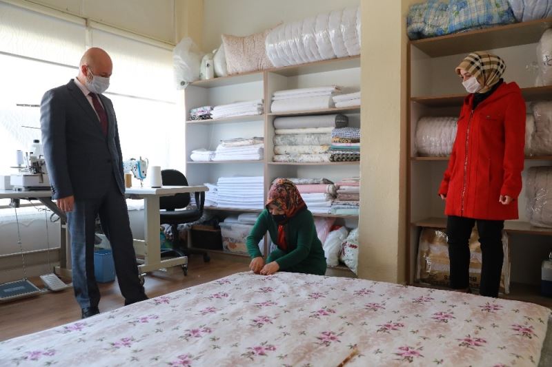 İŞKUR İl Müdürü Ayşe Ak ile birlikte Mevlana Mahallesi’nde Türkiye İş Kurumu (İŞKUR) tarafından verilen hibe desteğiyle kendi işini kuran Süreyya Yüncü’yü ziyaret eden Başkan Çolakbayrakdar, onunla sohbet etti.