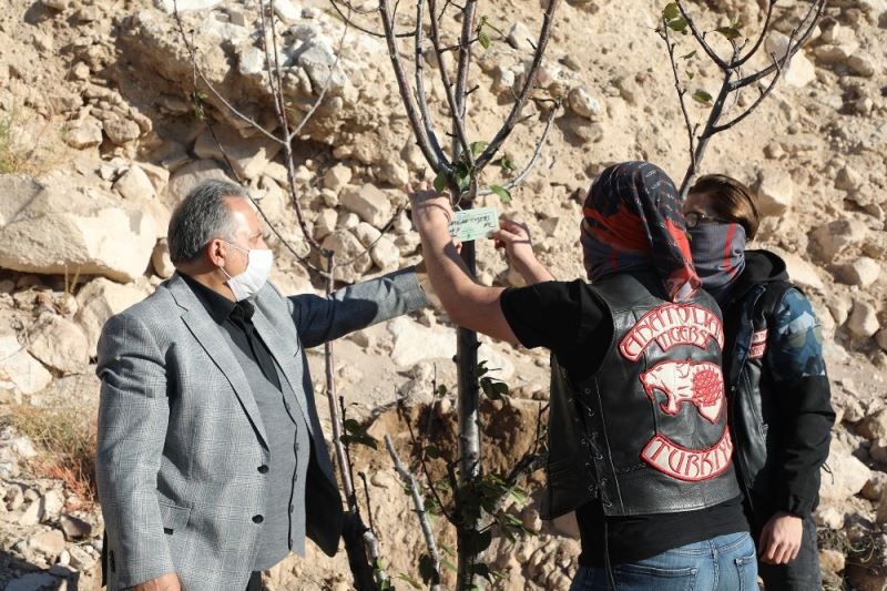 Başkan Yalçın, motosiklet kulübü ile ağaç dikti