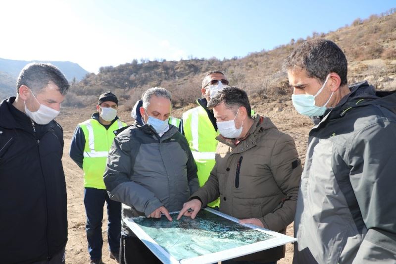 Talas Belediye Başkanı Mustafa Yalçın, yapım çalışmalarına başlanan Zincidere Göleti Mesire Alanı’nda incelemelerde bulundu.