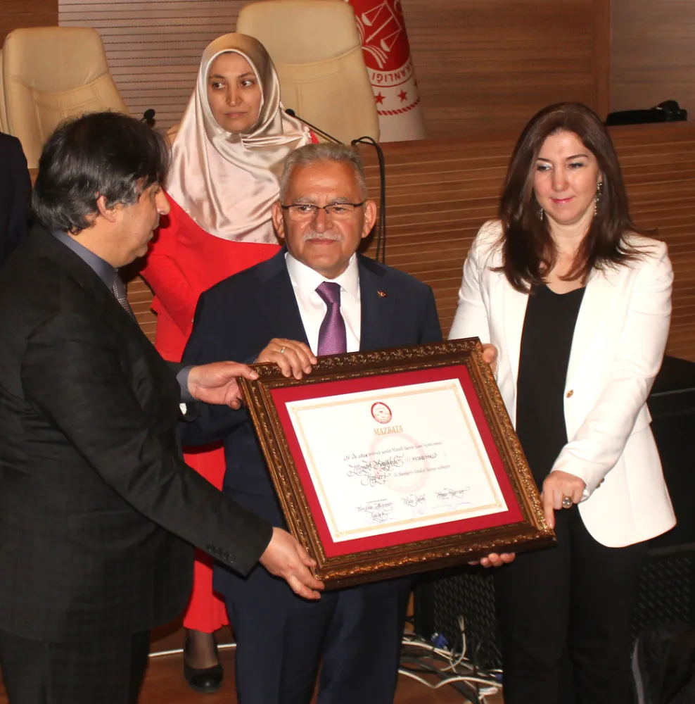 Kayseri’de seçim sonuçlarına göre en fazla oyu alarak yeniden Büyükşehir Belediye Başkanı seçilen Memduh Büyükkılıç, törenle mazbatasını aldı.