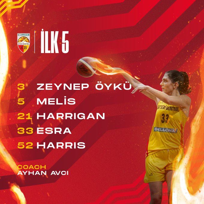 Fenerbahçe Öznur Kablo karşısında ilk beşimiz Zeynep, Melis, Harrigan, Esra ve Harris’ten oluştu.