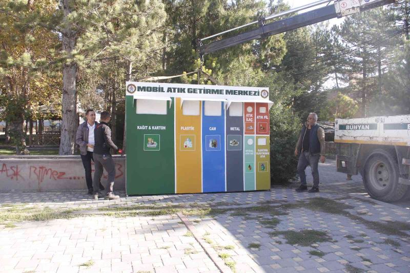 Tamamı Bünyan Belediyesi Temizlik İşleri Müdürlüğü ekiplerince yapılan Mobil Atık Getirme Merkezinin ilki Şehit Yusuf Uğur Caddesi’ne yerleştirildi.