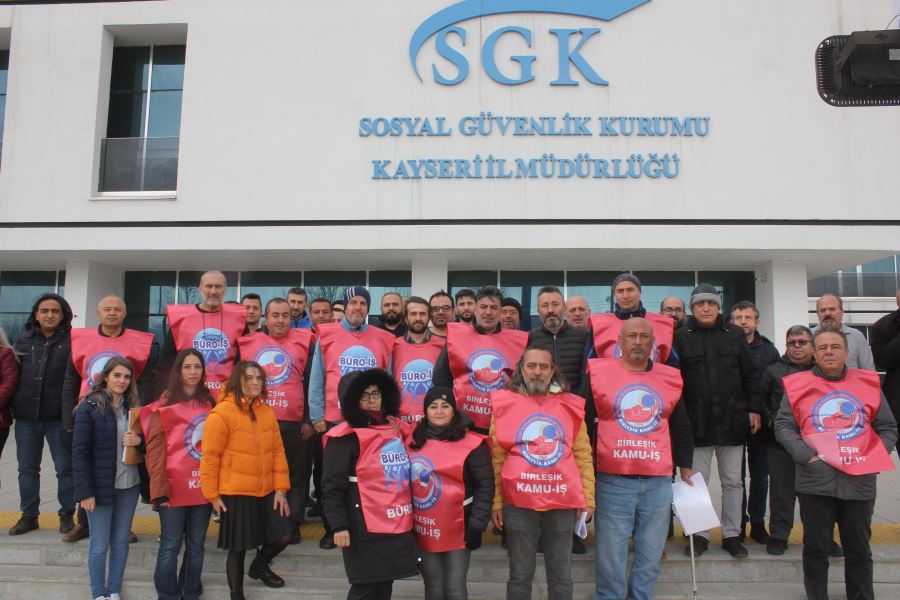 Büro-İş Sendikası Kayseri İl Temsilcisi Kemal Aytekin, SGK binası önünde bir açıklama yaparak SGK çalışanlarının üvey evlat muamelesi gördüğünü iddia etti. Aytekin, SGK çalışanları üvey evlat değildir. Köle hiç değildir. Bizler bu ülkenin yurttaşlarına hizmet veren kamu çalışanlarıyız dedi.