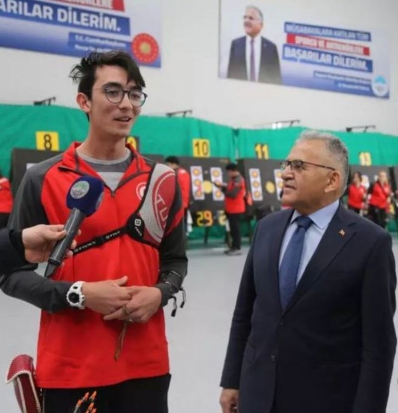 KAYSERİ BÜYÜKŞEHİR BELEDİYE BAŞKANI MEMDUH BÜYÜKKILIÇ, DÜNYA OKÇULUK ŞAMPİYONASI'NDA ŞAMPİYONLUĞU ELDE EDEN MİLLİ OKÇU METE GAZOZ'U TEBRİK ETTİ.