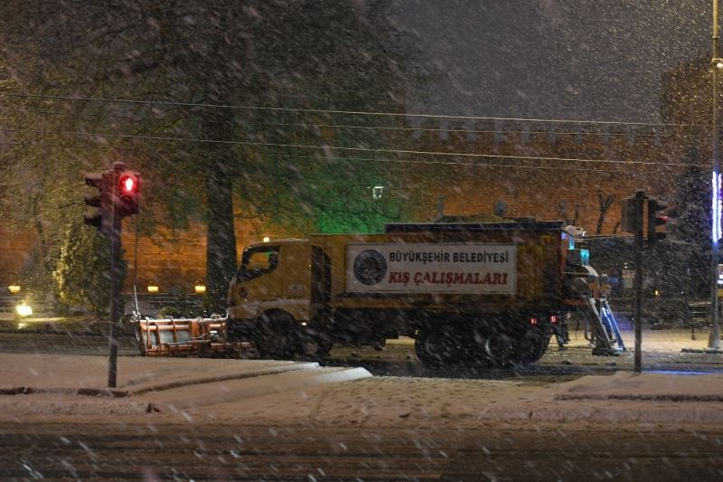 7 noktada, 125 araç ve 273 personel ile hazır kıta bekleyen Kayseri Büyükşehir Belediyesi Fen İşleri Daire Başkanlığı ile Kırsal Hizmetler Daire Başkanlığı karla mücadele ekipleri, dün akşam saatlerinde yağan kara anında müdahalede bulundu.