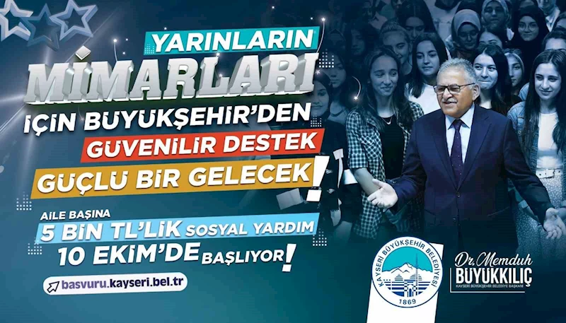 Öğrenci ve genç dostu Başkan Dr. Memduh Büyükkılıç yönetimindeki Kayseri Büyükşehir Belediyesi, bu sene de Kayseri’deki dar gelirli üniversite öğrencisi bulunan ailelere sosyal yardımını sürdürüyor. Aile başına 5 bin TL’lik sosyal yardımın yapılacağı uygulama için başvurular 10 Ekim’de başlıyor.