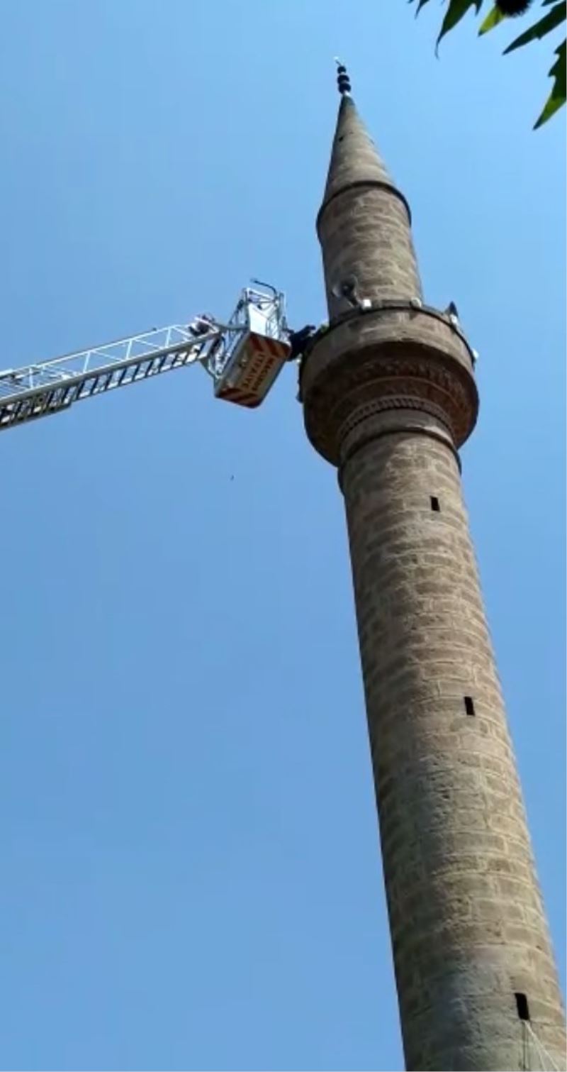 Cami minaresinde mahsur kalan adamı itfaiye kurtardı