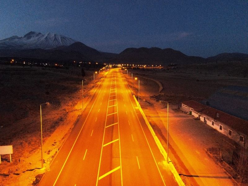 Develi’den Erciyes Tekir Gölet’ine kadar aydınlatılması planlanan yolun, ilk etabı olan Develi Çevre Yolu ile Aksu Mevki Kavşağının sonuna kadar olan kısmın aydınlatma çalışması tamamlandı.