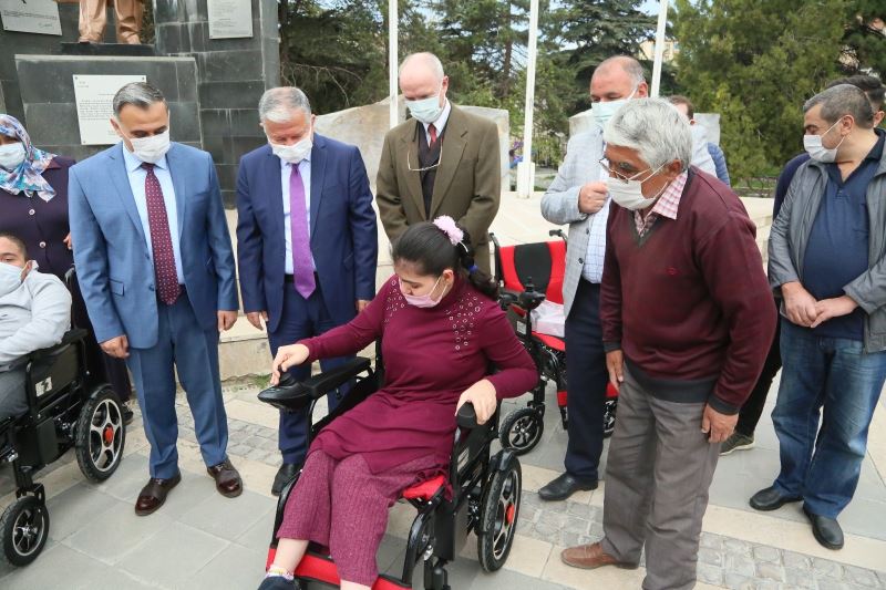 Develi Kaymakamlığı, Develi Belediyesi ve Öksüt Madenciliğin destekleriyle Develi Cumhuriyet Meydanında 35 engelli aileye bayram hediyesi olarak engellerini kaldırmaya yardımcı olmak adına akülü sandalye verildi.