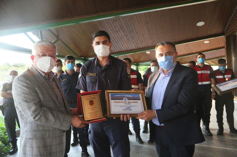 Yemeğin ardından görevlerinde üstün başarı gösteren jandarma personeline ilçe protokolü tarafından plaket ve takdir belgesi verildi.
