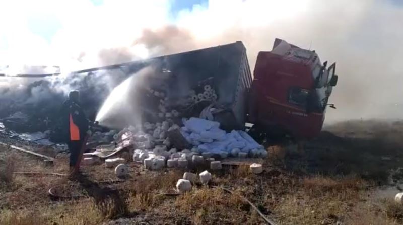 Kayseri-Niğde karayolunun 62. kilometresinde meydana gelen kazada, direksiyon hakimiyeti kaybolan iplik yüklü tır devrildi. Tırın devrilmesi ile birlikte dorsede bulunan iplikler alev aldı. Yapılan ihbar sonrasında olay yerine Niğde ve Yeşilhisar itfaiye ekiplerinin yangın söndürme çalışmaları sürüyor.