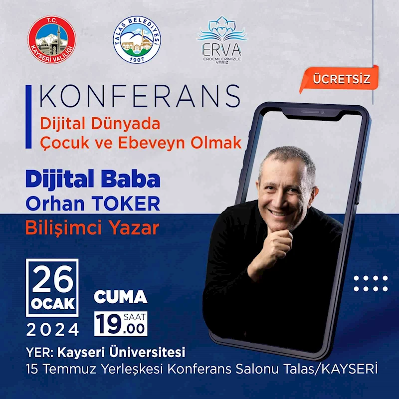 Talas Belediyesi tarafından düzenlenen yarıyıl programları hız kesmeden devam ediyor. Bu çerçevede ’Dijital Baba’ olarak bilinen bilişimci yazar Orhan Toker, Dijital Dünyada Çocuk ve Ebeveyn Olmak konulu bir konferans verecek.