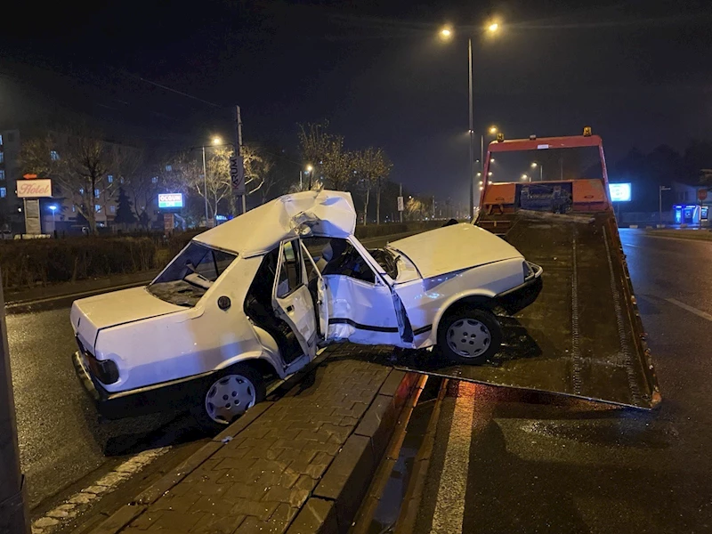 Direğe çarpan otomobil ortadan ikiye büküldü: 4 yaralı