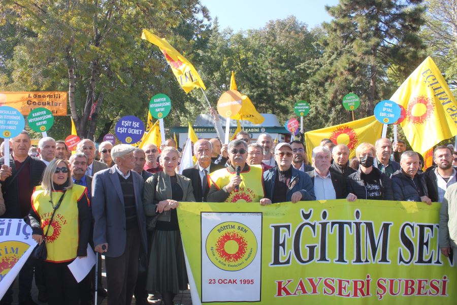++++Eğitim Sen Kayseri Şube Başkanı Sedat Ünsal, “ meslek itibarımız, haklarımız ve geleceğimiz için eğitim emekçileri olarak bugün derslere ara vererek bir günlük iş bıraktık. Bizim taleplerimiz gayet net ve açık dedi.