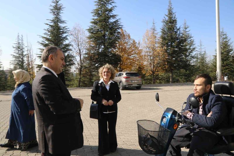 Erciyes Üniversitesi (ERÜ) Edebiyat Fakültesi öğrencisi Abdulsamet Sert’e Umut Köprüsü Hollanda Yardımlaşma ve Dayanışma Vakfı tarafından temin edilen engelli akülü aracı Rektör Prof. Dr. Fatih Altun tarafından teslim edildi.