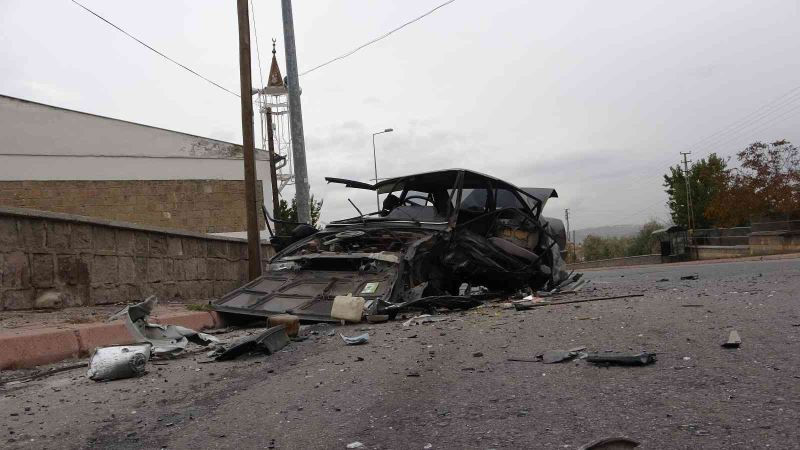 Feci kazada otomobil parçalara bölündü