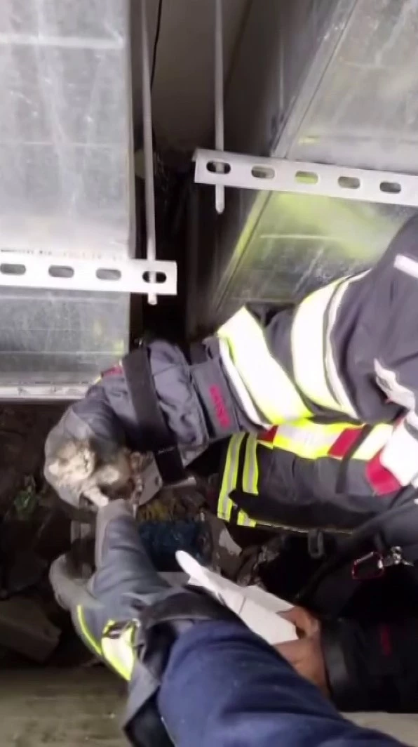 Havalandırma boşluğuna düşen kedinin yardımına itfaiye koştu