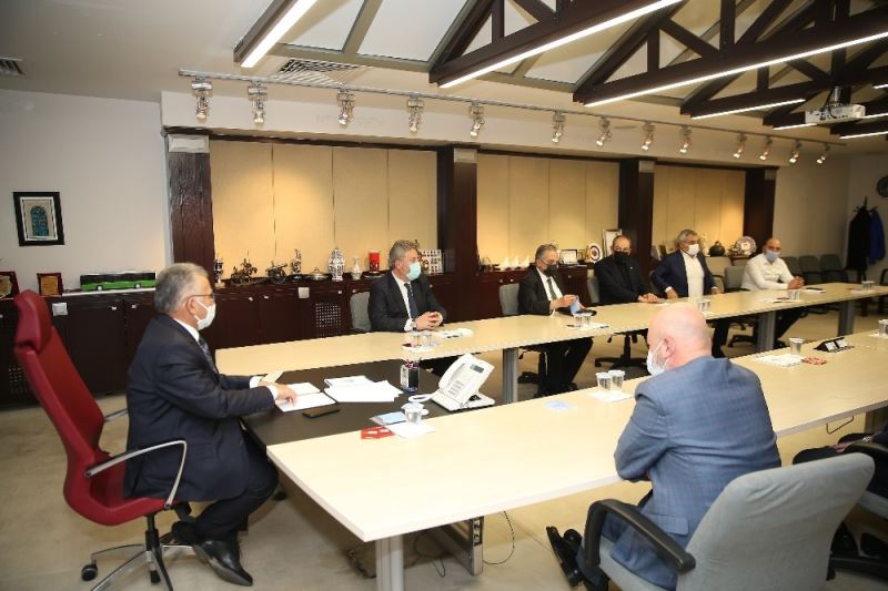 Kayseri Büyükşehir Belediye Başkanı Dr. Memduh Büyükkılıç, Pandemi ile ilgili kararlar ve kısıtlamalarda herhangi bir mağduriyet oluşmaması adına Melikgazi, Kocasinan, Talas, Hacılar belediye başkanları ile Sanayi, Ticaret, Borsa ve KESOB Başkanları ile temsilcilerinin katıldığı istişare toplantısı yaptı. Başkan Büyükkılıç, “Şehrimizin esenliğini, huzurunu ve üretime olan katkısını sürdürme adına hepimizin gayret etmesi gerekiyor” dedi.