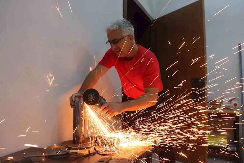 KAYSERİ'DE 20 YILLIK BEDEN EĞİTİMİ ÖĞRETMENİ DAVUT GÖKDOĞAN, KENDİ PARASIYLA HURDACILARDAN ALDIĞI ATIL MALZEMELERİ OKULUN BODRUM KATINDA KAYNAK VE SPİRAL KULLANARAK PİYASADA BULUNMAYAN VE ÖZEL ÜRETİM GEREKTİREN BİLEK GÜREŞİ SPOR MALZEMELERİNİ KENDİ ÜRETİ