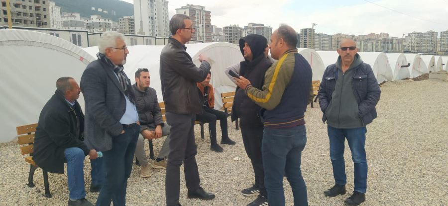 İlçe Başkanı Osman Haymana ve beraberindekiler burada depremzede vatandaşlara geçmiş olsun dileklerini iletti, yanlarında götürdükleri yardım malzemelerini teslim etti.