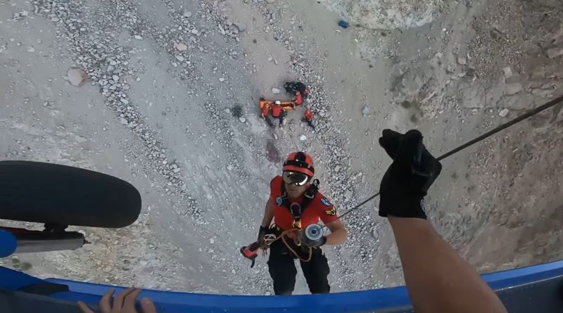 Erciyes Dağı’nda üzerlerine kaya yuvarlanması sonucu 1 dağcının öldüğü, 1 dağcının da yaralandığı olayda, kurtarma operasyonunun görüntüleri nefes kesti.