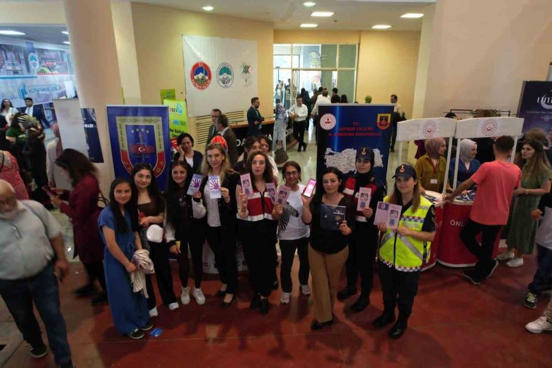 Kayseri İl Jandarma Komutanlığı Asayiş Şube Müdürlüğü Aile İçi Şiddetle Mücadele ve Çocuk Kısım Amirliği ekipleri tarafından Kayseri Kadın Kooperatifleri Fuarı’nda kurulan stantta KADES ve Kadına El Kalkamaz broşürleri dağıtıldı.