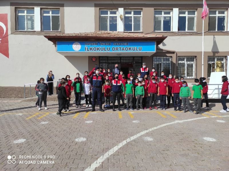 Kayseri İl Jandarma Komutanlığı, Aile İçi Şiddetle Mücadele ve Çocuk Kısım Amirliği personeli tarafından öğrencilere “Kişisel Güvenlik ve Suçtan Korunma” konusunda bilgilendirme yapılarak Jandarma Çocuk Dergisi, boya kalemi, hikaye kitabı ve Jandarma amblemli kalem kutusu hediye edildi.