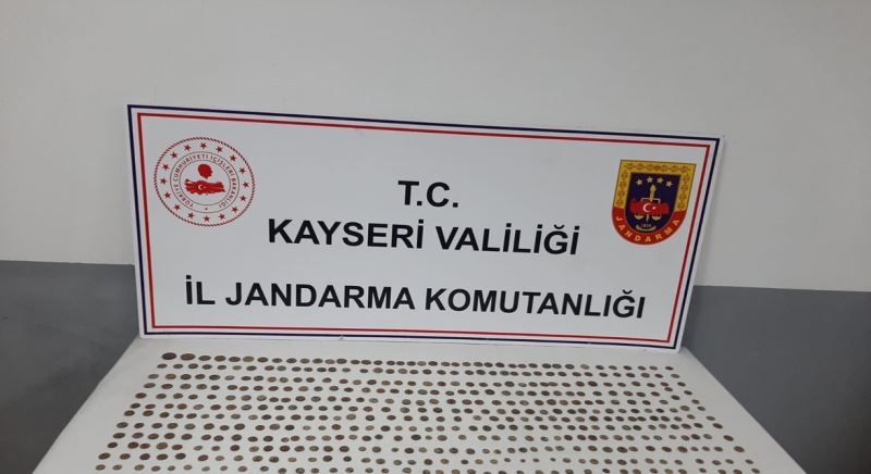 Kayseri’de jandarma ekipleri tarafından düzenlenen tarihi eser operasyonunda 550 adet sikke ele geçirildi.