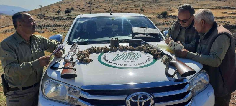 Kayseri’nin İncesu ilçesine bağlı Tekkedağı Genel Avlağı’nda yakalanan şahısların av esnasında vurmuş oldukları 18 adet bıldırcına ekiplerce el konulurken, tüfeğinde takoz bulundurmayan bir kişinin tüfeğine ise mülkiyeti kamuya geçirilmek üzere el konuldu.