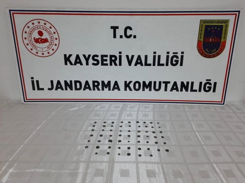 Kayseri’de jandarma ekipleri tarafından yapılan çalışmalarda; bir şahıs kaçak kazıdan elde ettiği 60 adet sikkeyi satarken yakalandı.