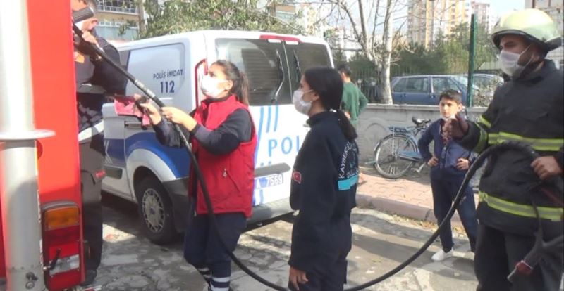 Kayseri Büyükşehir Belediyesi İtfaiye Daire Başkanlığı bünyesinde staj yapan Fatma Uçar ve Hatice Kahveci, diğer itfaiye erleri ile birlikte yangın ihbarlarına koşuyor. Son olarak Yenişehir Mahallesi’nde bir yangın ihbarına ekiplerle birlikte giden Hatice Kahveci ve Fatma Uçar, alevlere müdahale eden meslektaşlarına yardım etti.