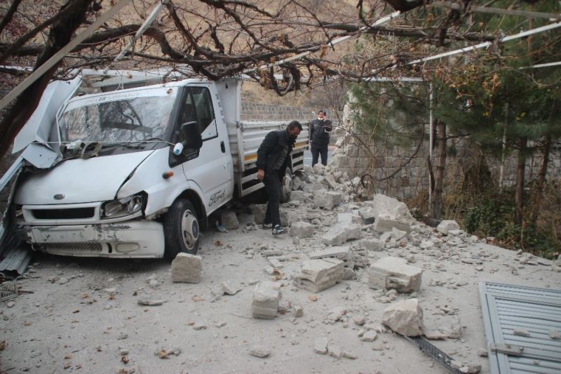 Kayseri’nin Talas ilçesinde kafa kafaya çarpışan kamyonet ve otomobil müstakil bir evin garaj kapısını ve duvarlarını yıktıktan sonra durabildi. Feci kazada bir kişi yaralandı.