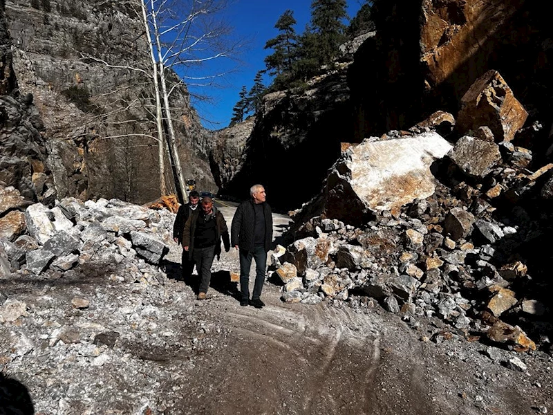 Bu kapsamda, muhtemel bir heyelanın önüne geçilmesi için ekipler, iş makinaları ile çatlaklar oluşan ve düşme tehlikesi oluşturan büyük kayaların temizlenme çalışmalarını hummalı bir şekilde sürdürüyor.