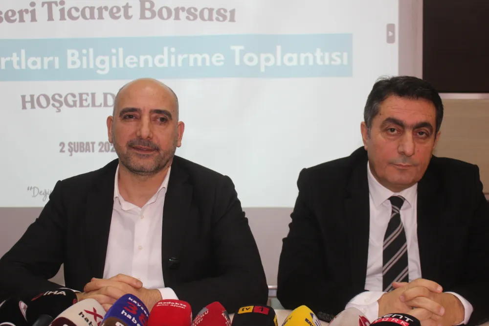 Kayseri Ticaret Borsası Yönetim Kurulu Başkanı Recep Bağlamış ile Kayseri kırmızı Et Üreticileri Birliği Başkanı Ercan Aras, bir basın toplantısı düzenleyerek, sığır kesiminde yeni uygulamaya konulan çalışmalarla ilgili bilgiler verdi.