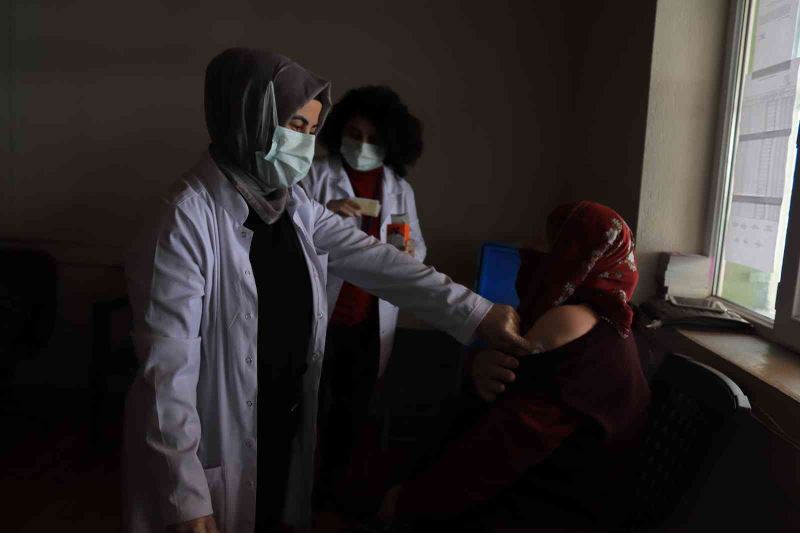 Kayseri’de sağlık çalışanları, zorlu kış şartlarına rağmen karlı yolları aşarak vatandaşları korona virüse karşı korumak için aşılamaya devam ediyor.