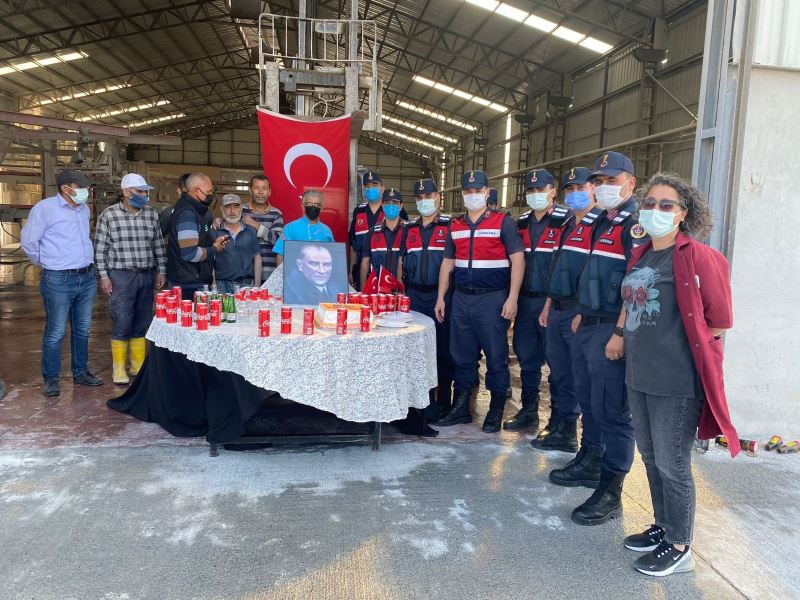 Kayseri’de bir fabrika çalışanları, Jandarma Teşkilatı’nın 182. yıl dönümü dolayısıyla jandarma ekiplerine sürpriz yapmak istedi. 156’yı arayarak çalıştıkları fabrikada büyük bir kavga olduğunu söyleyen çalışanlar, jandarmayı çağırdı. Kısa süre içerisinde fabrikaya gelen ekipler, gördükleri manzara karşısında şaşırdı. Volkan yakarak ve alkışlarla jandarma ekiplerini karşılayan fabrika çalışanları, üzerinde "Jandarma Teşkilatı’nın kuruluşunun 182. yıldönümü kutlu olsun" yazılı pasta da kesti.